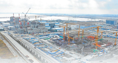 2016年12月10日,田湾核电站3号机组郑重进入全面调试阶段。图为田湾核电站3号机组反应堆厂房外安全壳。新华社发